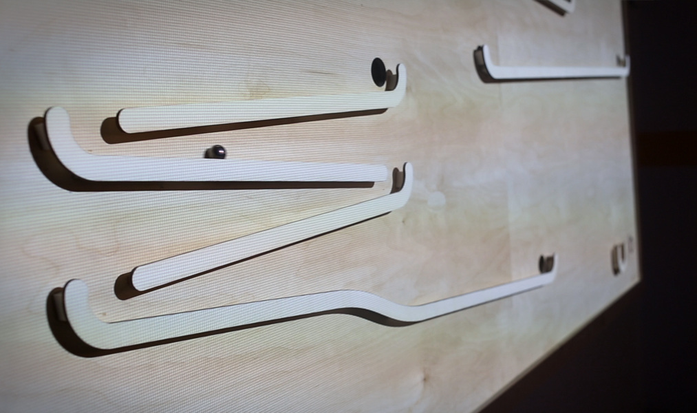 The project aims to examine the relationship between the classic and digital traditions of gaming using traditional materials (wood and a marble), digital projection and motion capture.